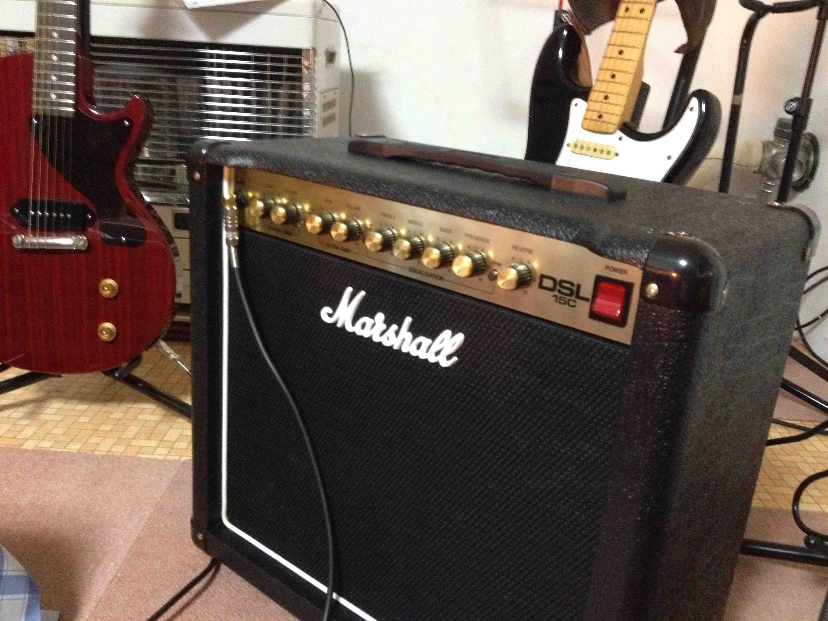 本当はマーシャルなんて買うつもりは全くなかったんだがいつも使わせてもらっているスタジオのでかいマーシャルアンプの真空管がヘタっていて(ヘタる瞬間に立ち会いました)音がまともに出ない状態になってしまい、別のアンプで納得することなくレコーディングをせざるを得なかったこと、更にその後、とある小さい箱でライブをさせて頂いたのだが、そこにあったそれこそ15Wくらいの小さいマーシャルコンボがしっかりいい音を出してくれてたこと、に感動したのでいつでも好きな音が出せるように購入を決意。